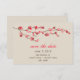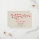 A simple, modern wedding save the date featuring a watercolor inspired illustration of a branch of cherry blossoms on front. Red and brown text. Background is a deep shade of off white. Look for matching wedding invitations and rsvp cards at Jill's Paperie.