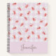 Watercolor Cherry Pink Gingham Pattern Custom Name Notebook