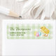 Destei's watercolor baby chick and pastel eggs. The background features a green gingham pattern and there are two personalizable text areas including one for a name and another for the address.