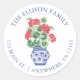 Watercolor Chinoiserie Vase Red Geraniums Address Classic Round Sticker