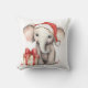 Cute watercolor elephant wearing a Santa hat with a Christmas gift on a white background.