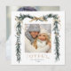 This elegant photo holiday square card features a watercolor pine branch frame (border) adorned with gold ribbons, holly berries, and botanical greenery, along with an additional photo on the back. Send Christmas cheer to family and friends.