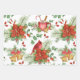Watercolor Christmas Poinsettia and Red Cardinal Wrapping Paper Sheet