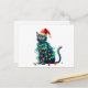 Watercolor Christmas Santa Cat Tree Lights Postcard
