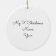 This adorable Christmas ornament features a watercolor illustration of a cute hedgehog with his Christmas gifts on one side, the a place for you to personalize it on the other side.