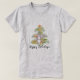 Festive watercolor illustration features a charming squirrel and decorated Christmas tree with customizable "Happy Holidays" text