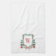 Watercolor Christmas Topiary Monogram Crest Kitchen Towel