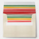 Beautiful watercolor Christmas trees topped with a gold star accents the front of these ivory striped envelopes. Multi-colour stripes line the inside and your FREE return address is printed on the back flap. MATCHING items in our collection.