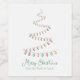 Cute watercolor strand of holiday lights form a pretty Christmas tree above Merry Christmas in fun cursive green script. Customize these fun, modern wine labels under the string of Xmas lights.