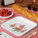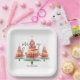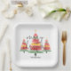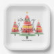 Beautiful watercolor Christmas trees topped with a gold star accent these square paper plates with Merry Christmas and your family name in chic lettering. MATCHING items in our collection.