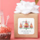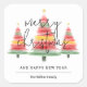 Beautiful watercolor Christmas trees topped with a gold star accent these large square stickers with Merry Christmas, Happy New Year and your name in chic lettering. MATCHING items in our collection.