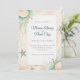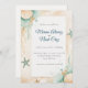 A serene watercolor coastal chic wedding invitation featuring hand-painted seashells, sea stars, and soft seafoam green leaves set against warm sandy hues. The airy design and elegant script fonts capture the effortless beauty of a seaside celebration, perfect for beach or destination weddings. Easily personalize with your names, date, and ceremony details.