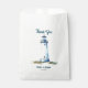 This elegant watercolor wedding favour bag captures the serene beauty of a New England beach wedding. Featuring a hand-painted lighthouse, the design sets a romantic coastal tone. The layout strikes a balance between timeless charm and seaside whimsy. Ideal to hold favours at a summer weddings in Cape Cod, Nantucket, or any coastal location, these favour bags are a stunning part of any beach-inspired wedding. Available with matching products.