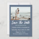 The Watercolor Coastal Seascape Magnetic Save the Date features a serene blue ocean-inspired background with soft watercolor details and elegant white script typography. Designed to showcase the couple’s photo, this magnetic save the date blends coastal charm with timeless romance, making it a beautiful and memorable way to announce your wedding day.