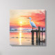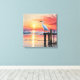 Watercolor Coastal Sunrise With Egret Canvas Print