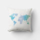Watercolor Cool World Map Throw Pillow