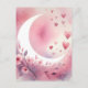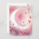 Watercolor Crescent Moon, Hearts, Cherry Blossoms Postcard