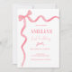 Watercolor Cute Pink Bow Coquette 1st Birthday Invitation