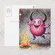 Watercolor Cute Pink Monster and a Campfire Postcard