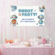 Watercolor Blue and White Cute Robot Birthday Banner.