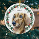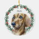 Watercolor Dachshund Personalized Holiday Wreath Ceramic Ornament