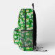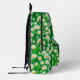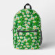 Backpack in a watercolor pattern of white daisies with golden yellow centres, on a grassy green background