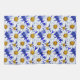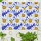 Tea towel in a watercolor pattern of white daisies with golden yellow centres, on a background in shades of denim blue