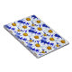 Notebook in a watercolor pattern of white daisies with golden yellow centres, on a background in shades of denim blue