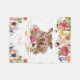 Nursery birth baby blanket features watercolor deer, flowers, ribbon banner personalized with baby's name, birthdate, time, weight, and length. Makes a great new baby gift!