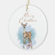 So pretty ceramic ornament! Design features watercolor deer with pine leaves and flower. Blue brush watercolor background. Lovely Merry Christmas script font. You can customize the design by changing the background colour, font size and colour and make the image small or big, arrange the elements as you like.