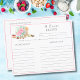 This elegant recipe exchange card features hand-painted watercolor roses and a charming mixer, surrounded by an assortment of delectable desserts.