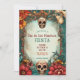 Set against a light green background with a subtle, textured finish, the invitation exudes a vintage charm that adds an extra layer of elegance. At the top, a beautifully detailed calavera—the iconic sugar skull—stands proudly with intricate watercolor detailing, embodying the spirit of remembrance and festivity. To complete the design, a smaller, equally detailed sugar skull is placed at the bottom, creating a vertically decorative layout that balances the invitation with a touch of tradition.