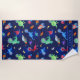 Watercolor Dinosaur Astronauts In Space Blue Beach Towel