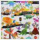 Watercolor Dinosaur Construction Kids Cute Pattern. Fun dinosaurs doing roadwork.