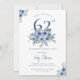 Watercolor Dusty Blue Floral 62nd Chic Birthday Invitation