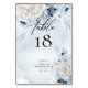 Wedding Table Number Card | Watercolor splash in hues of blue with light blue and white poppies. Customize text, font style, colour and size. Design created for the BarefootBride™ by © WhimsicalArtwork™ - This is part of a complete Wedding Stationery Suite with matching wedding, baby shower and other event stationery.