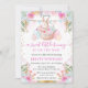 Watercolor Easter Rabbit and Flowers Baby Shower Invitation