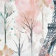 Watercolor Eiffel Tower Paris Pink Blue Wallpaper