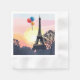 A charming watercolor illustration of the Eiffel Tower featuring floating pastel balloons. The artwork highlights soft textures and a whimsical, dreamy style that captures the playful essence of the iconic Paris landmark.