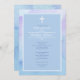 Watercolor swirls of blue, lavender and sapphire create a beautiful background that's overlaid with a light blue-coloured panel that hold's your event information. The featured cross and divider can be dragged to any location, made larger or smaller (+-) or eliminated.
