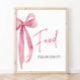 The Watercolor Elegant Blush Pink Bow Food Sign is a sophisticated addition to any event or celebration. Featuring a delicate watercolor blush pink bow design, this sign adds a touch of elegance and refinement to the food presentation. Perfect for labelling different dishes or buffet items, it helps guests easily identify and enjoy the culinary offerings. Whether displayed on a buffet table or as part of the overall decor, this sign serves as a stylish and functional accent, enhancing the dining experience with its timeless aesthetic. With its graceful design, it elevates the ambiance of the event, ensuring that every detail is both beautiful and tasteful.