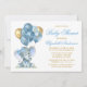 Watercolor Elephant Bow Balloons Shower Blue Gold Invitation