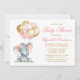 Watercolor Elephant Bow Balloons Shower Pink Gold Invitation
