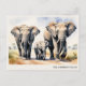 This elegant postcard pictures a majestic elephant family trekking across the African savannah, in soft blue and warm gold tones. The wildlife illustration captures the strength and bond of the herd, making it a perfect choice for personalized family stationery. Customize the text below the picture to feature your family name, a thoughtful greeting, or a "thank you" message. From sending a note to a loved one to looking for a safari-themed baby shower card, this watercolor-style postcard offers a unique, artistic touch.