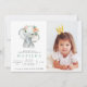 Watercolor elephant little girl birthday party invitation. With delicate blue and white polka dot details. Part of a collection.