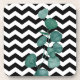 Watercolor Eucalyptus Black White Chevron Coaster
