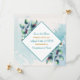 Beautiful simplistic wedding Save the Date cards with a watercolor Eucalyptus greenery botanical theme. Pretty pale sage green, blue, gold and white.