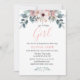 Personalize these elegant eucalyptus greenery and blush pink floral baby shower invitations. Easily add your baby's custom name and venue details in stylish script on the front.