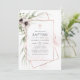 Baptism invitation featuring anemone flowers and eucalyptus leaves in a rose gold geometric frame.