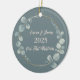 A eucalyptus watercolor floral design adorns this Christmas ornament - the names and date are customizable. This design is part of a large wedding collection.